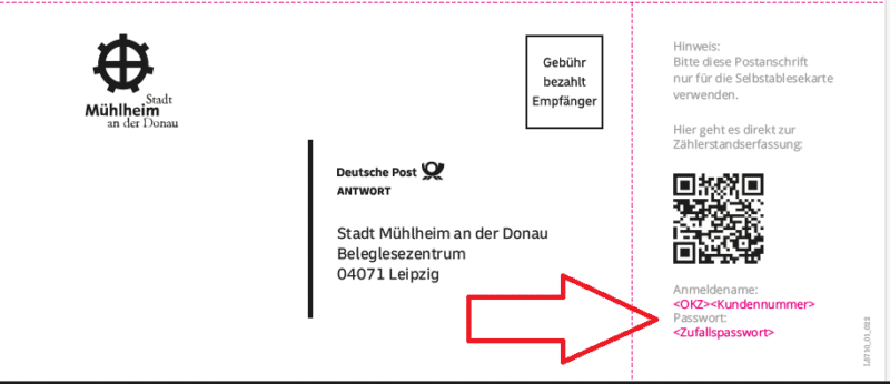 Über den untenstehenden Link können Sie Ihren Zählerstand online melden. Um Ihren Zählerstand melden zu können, benötigen Sie für das Portal Ihren Anmeldename und Ihr Passwort, die Sie unten rechts auf der Ablesekarte finden.